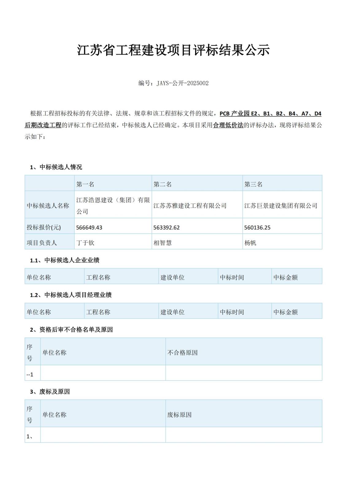 江蘇省工程建設項目評標結果公示